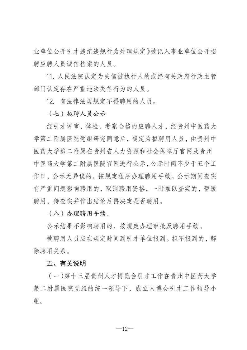 贵州中医药大学第二附属医院第十三届贵州人才博览会引才工作方案
