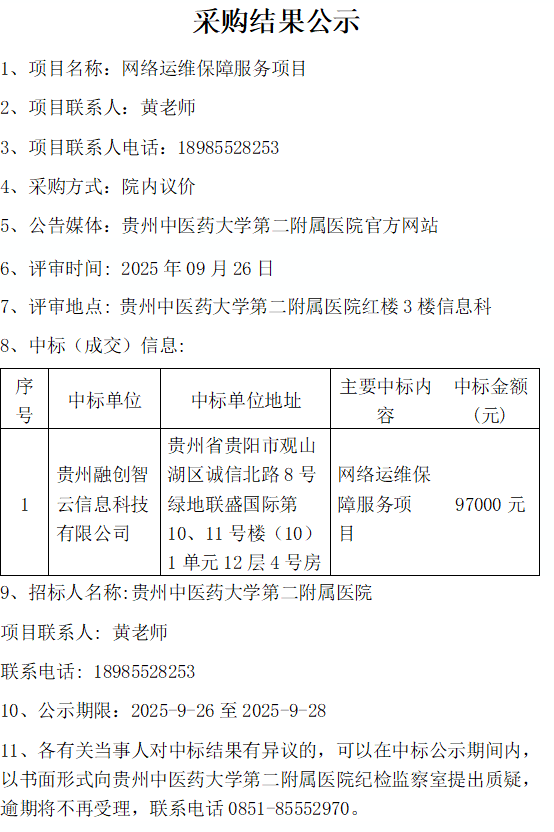 网络运维保障服务项目采购结果公示