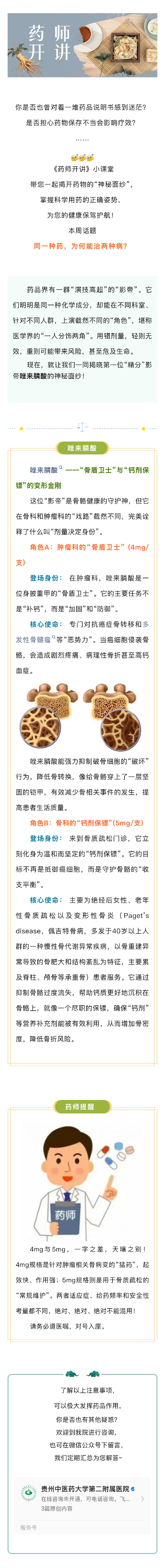 药师开讲(21)丨同一种药,为何能治两种病?药品界的“精分”影帝大赏之唑来膦酸