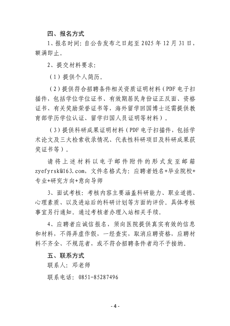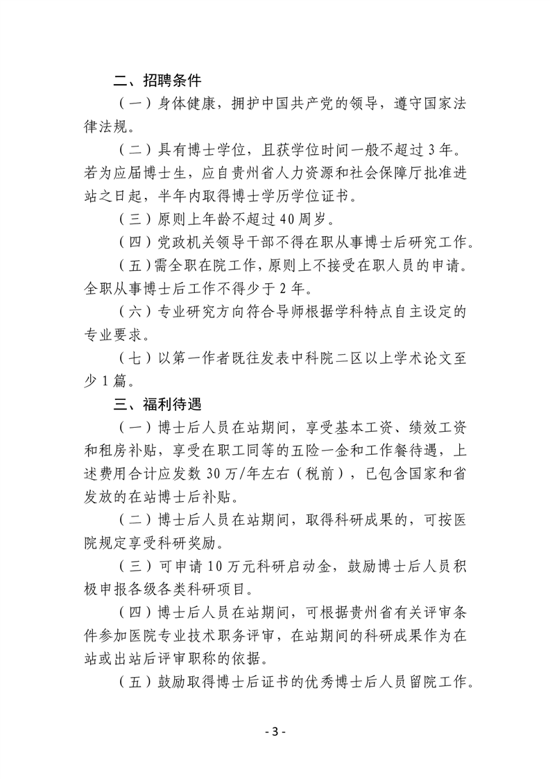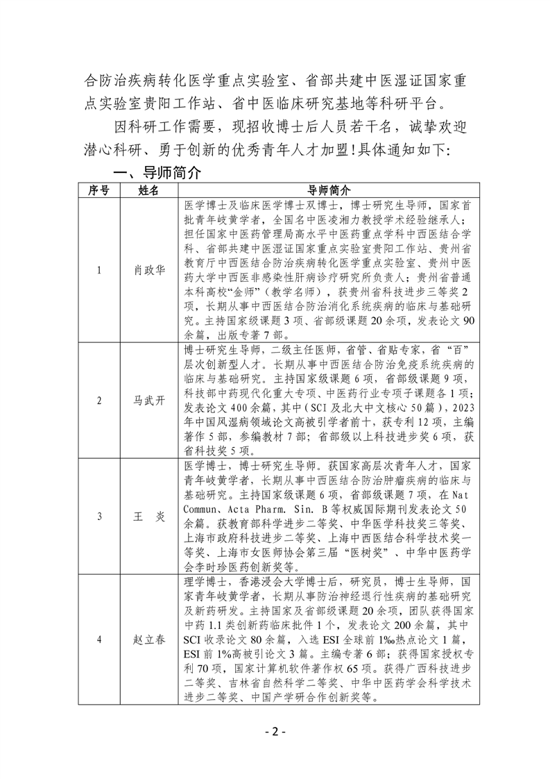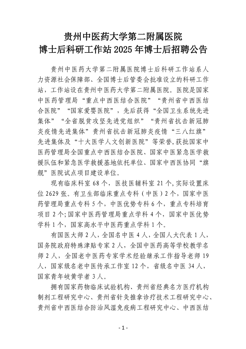 贵州中医药大学第二附属医院博士后科研工作站2025年博士后招聘公告