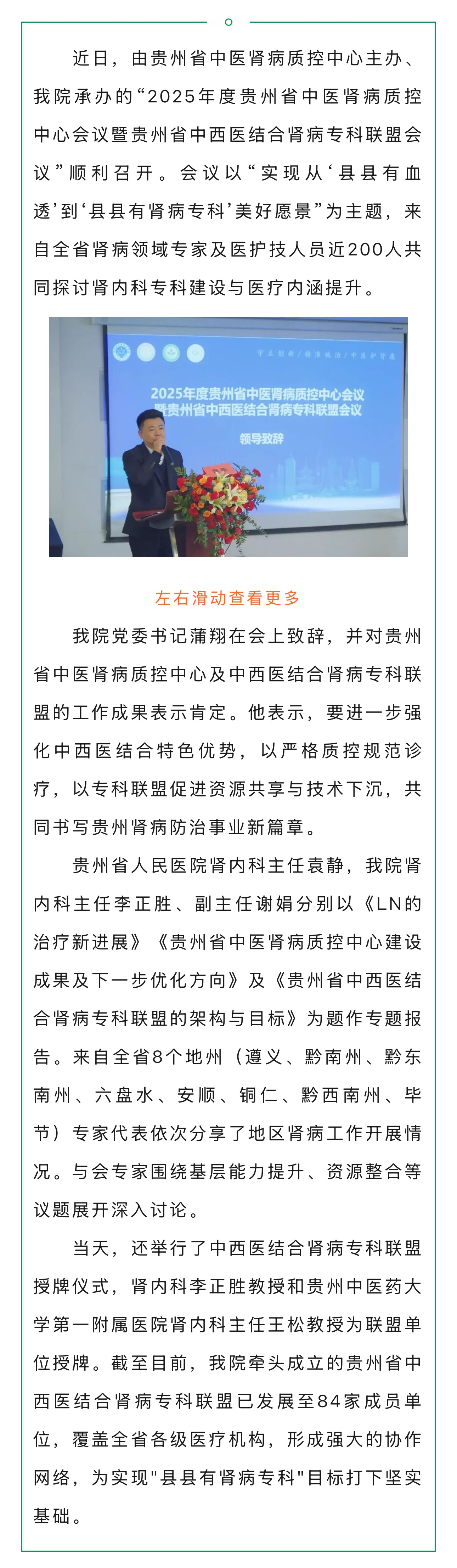 我院承办2025年度贵州省中医肾病质控中心会议暨贵州省中西医结合肾病专科联盟会议