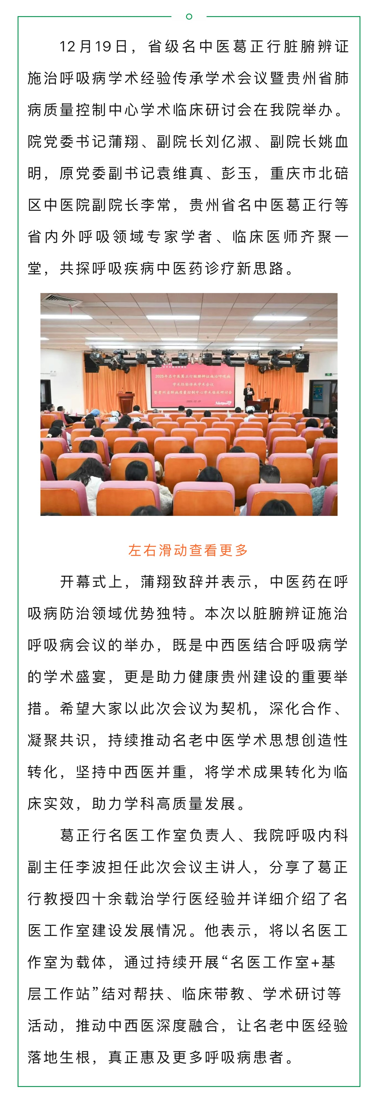 省级名中医葛正行脏腑辨证施治呼吸病学术经验传承学术会议暨贵州省肺病质量控制中心学术临床研讨会在我院举办