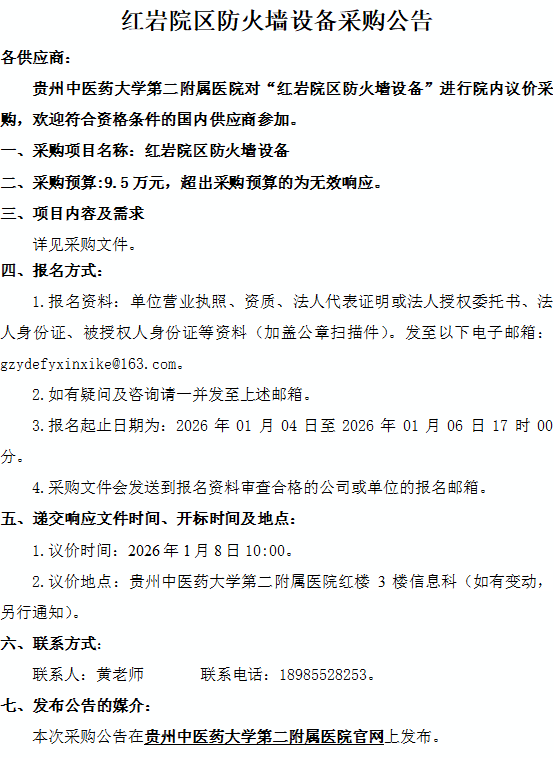 红岩院区防火墙设备采购公告