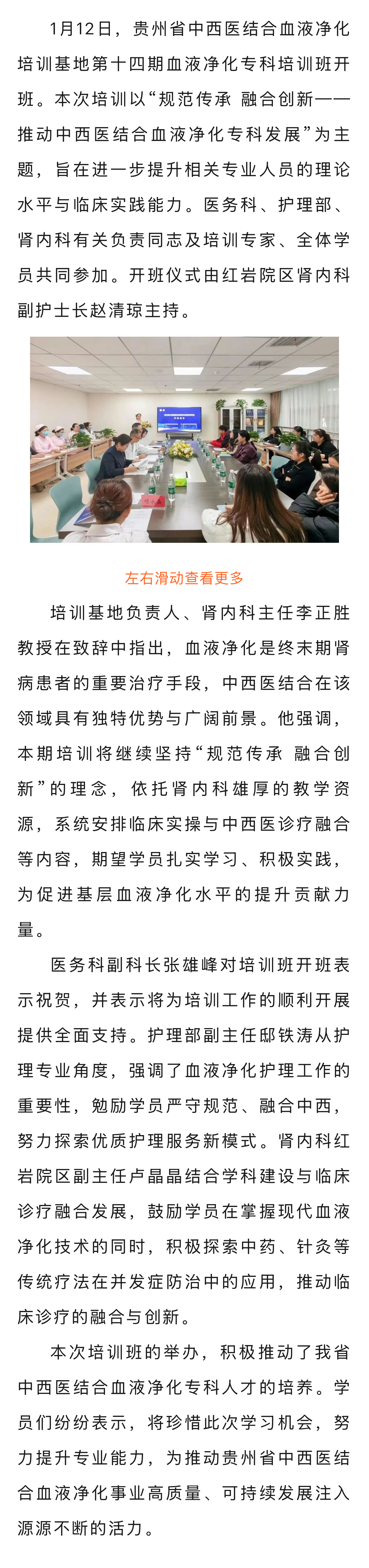 贵州省中西医结合血液净化专科培训班第十四期开班