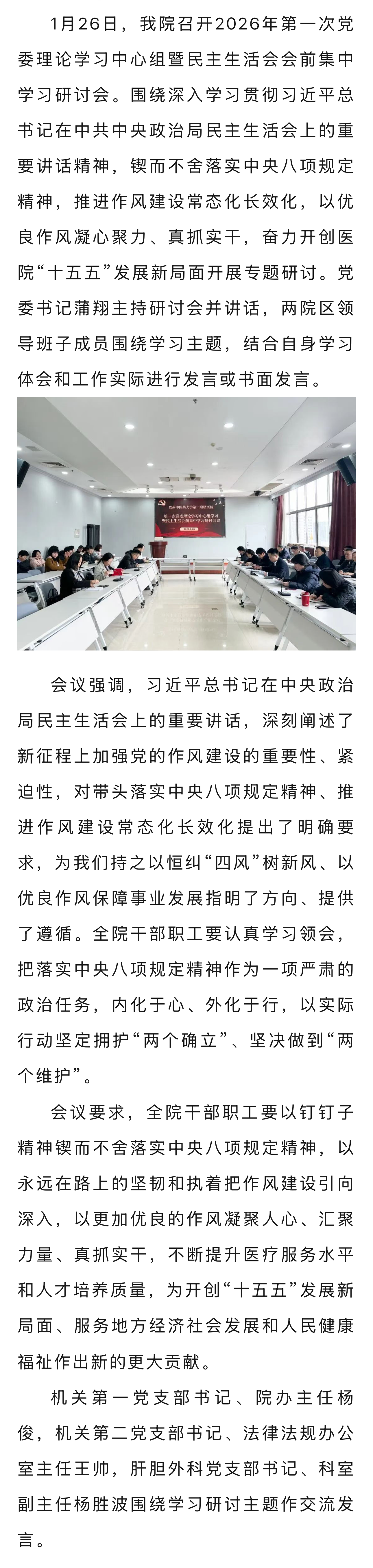 我院召开2026年第一次党委理论学习中心组暨民主生活会会前集中学习研讨会