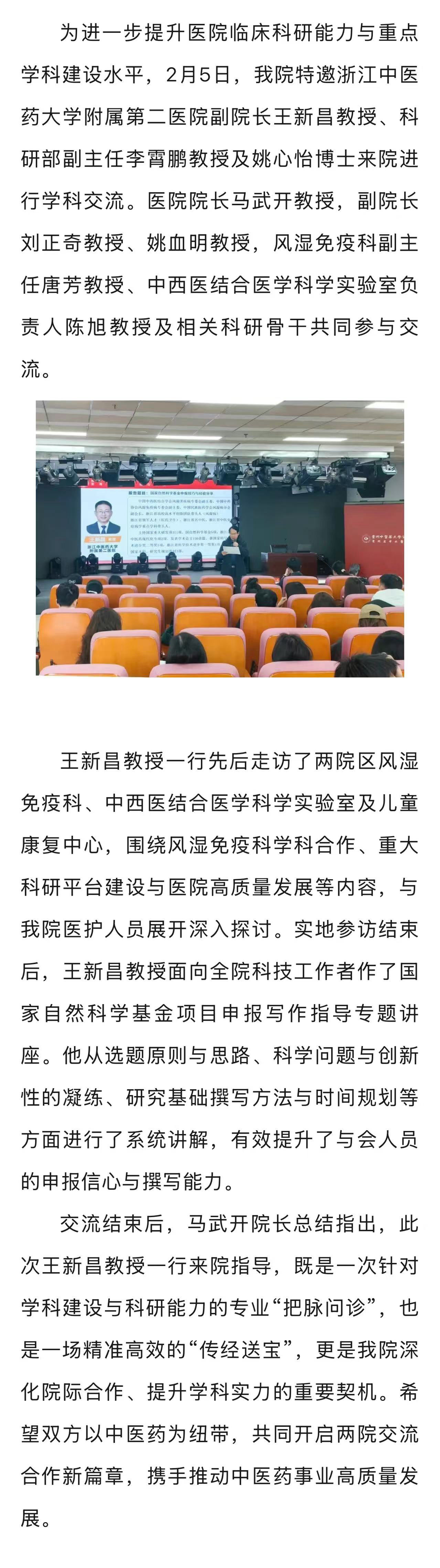 浙江中医药大学附属第二医院王新昌副院长带队至我院开展学科建设交流