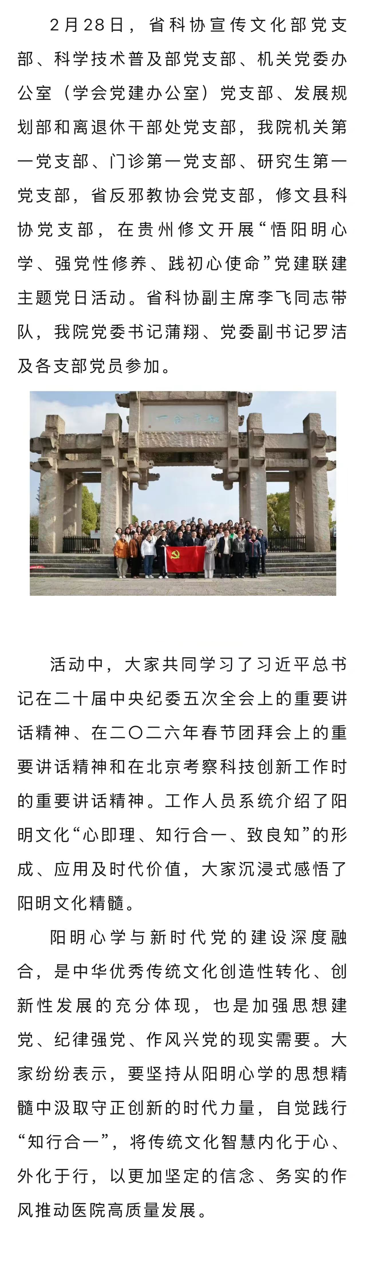 我院与省科协联合开展“悟阳明心学、强党性修养、践初心使命”党建联建主题党日活动