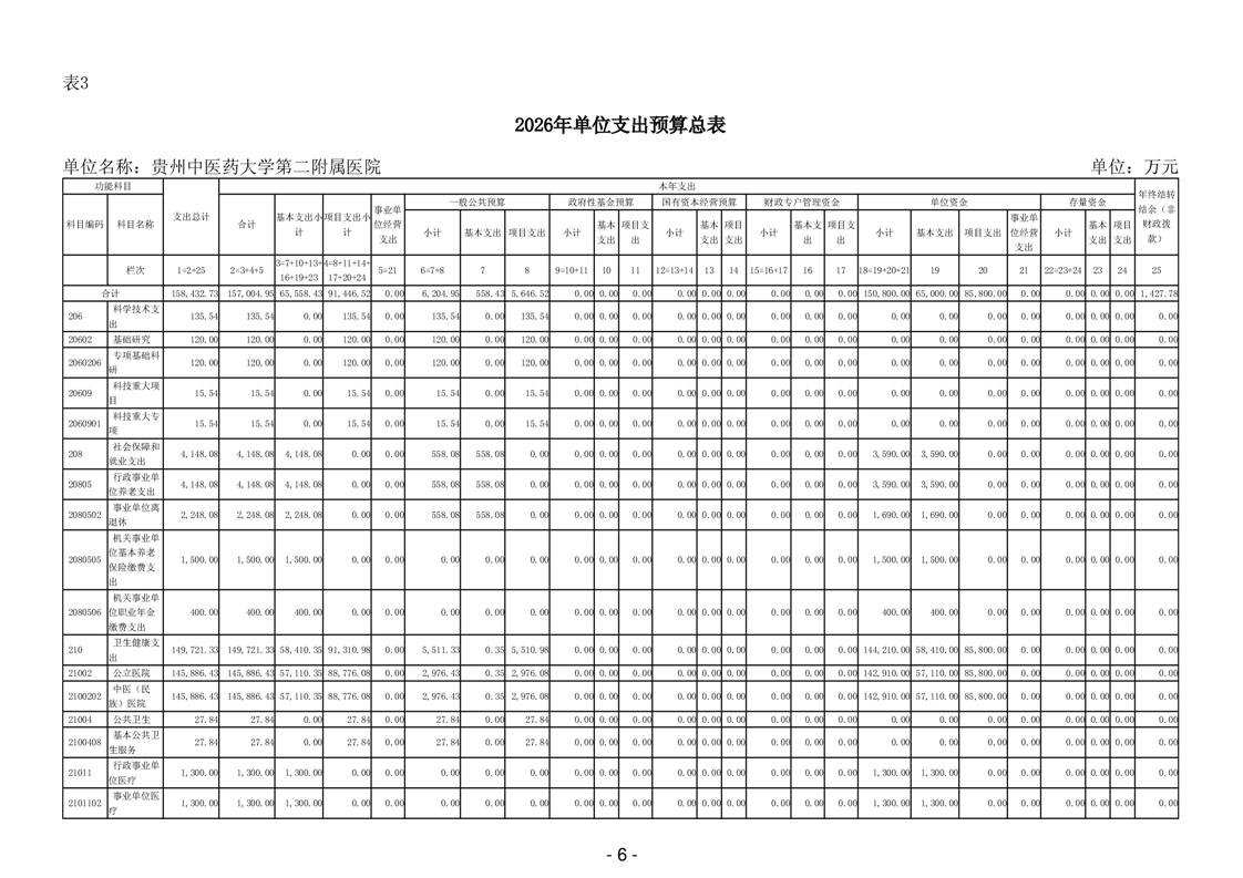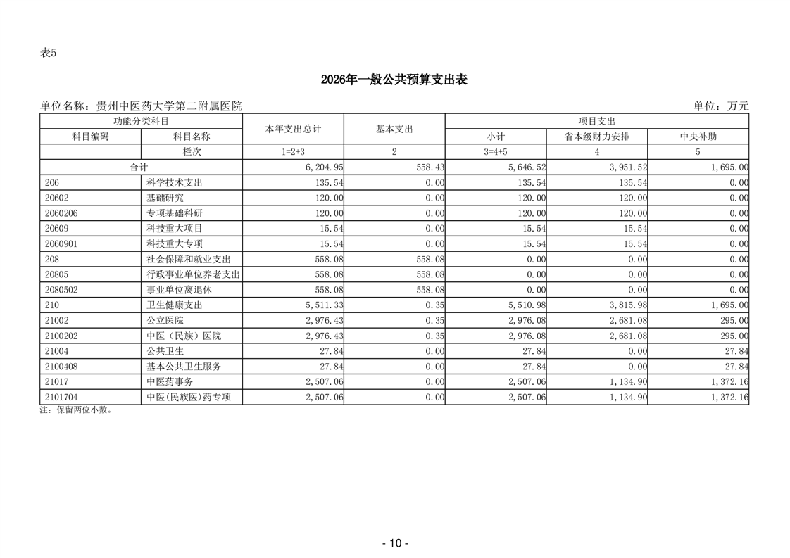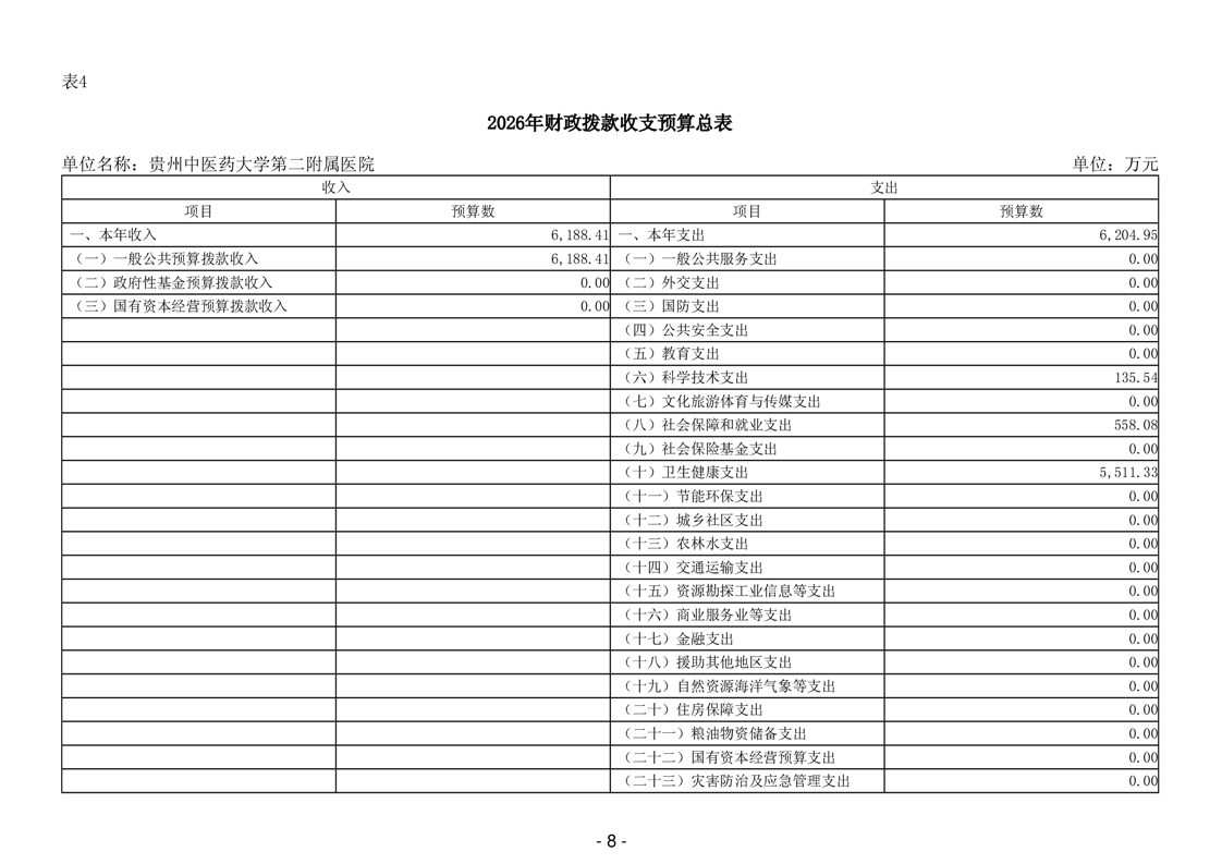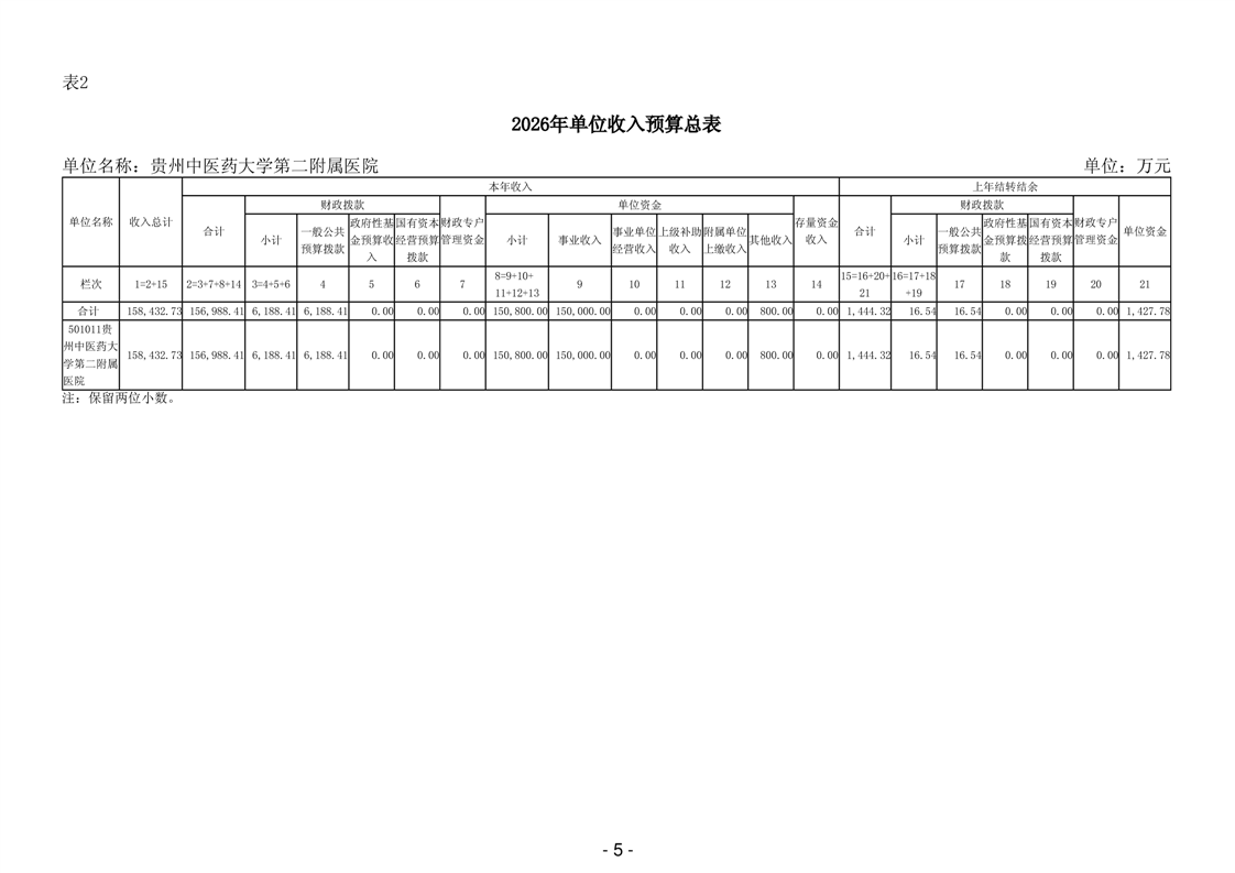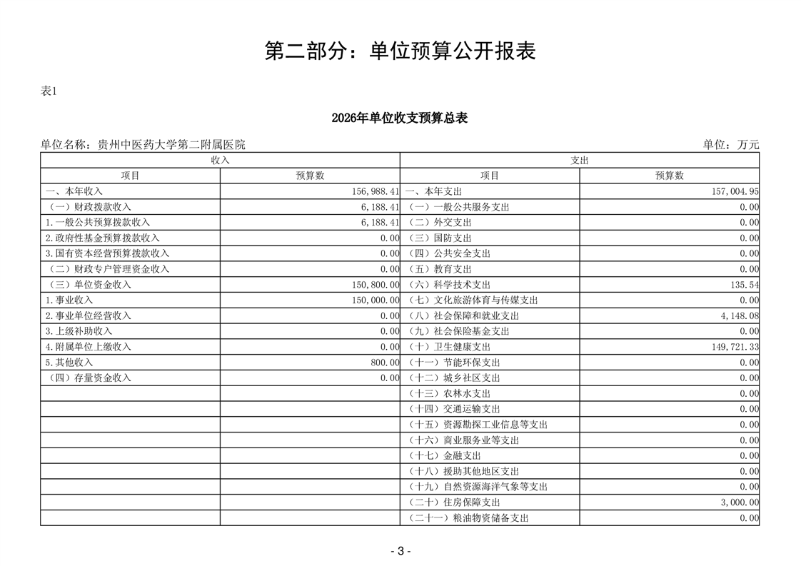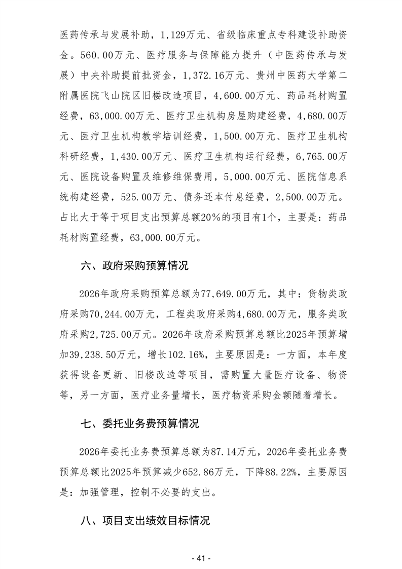贵州中医药大学第二附属医院2026年单位预算公开信息