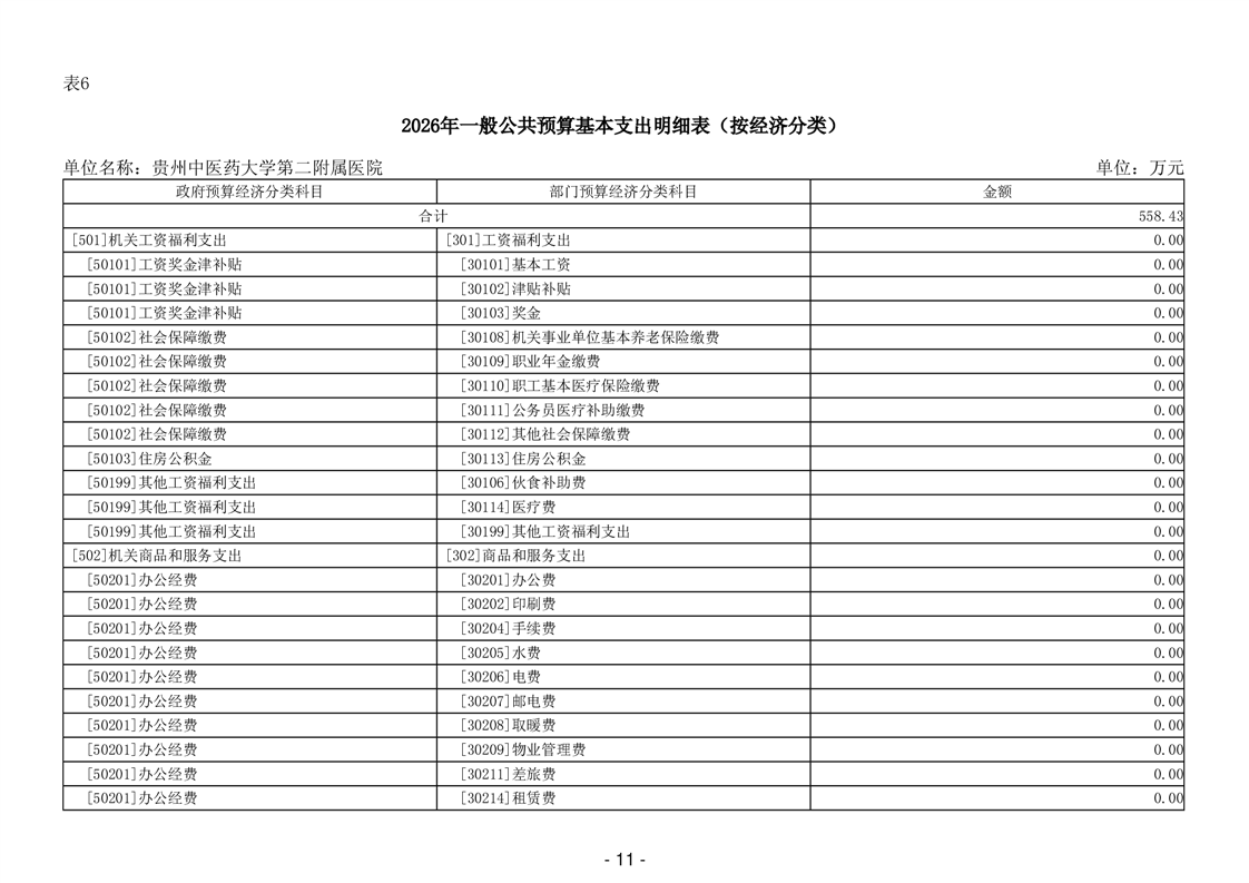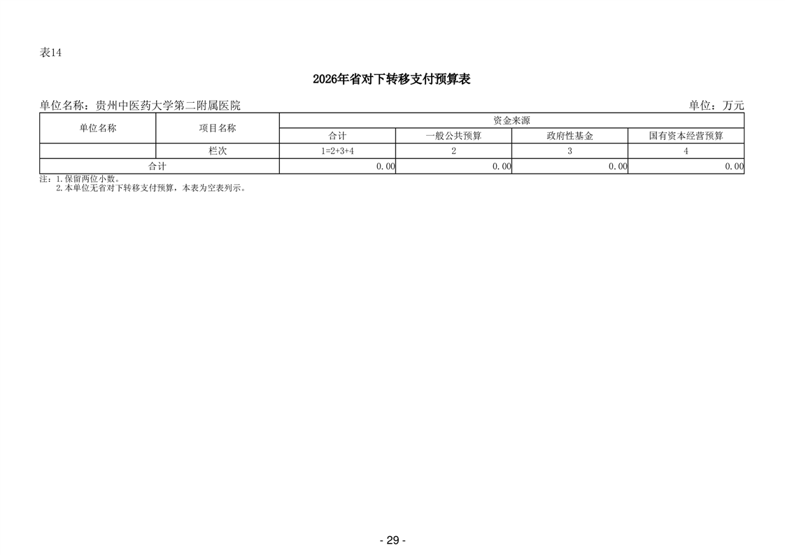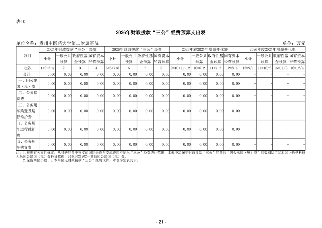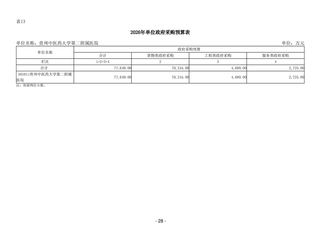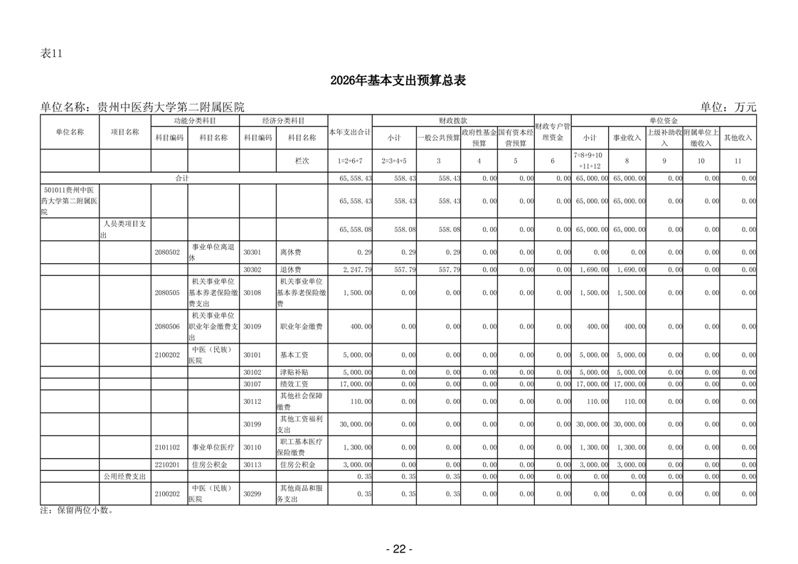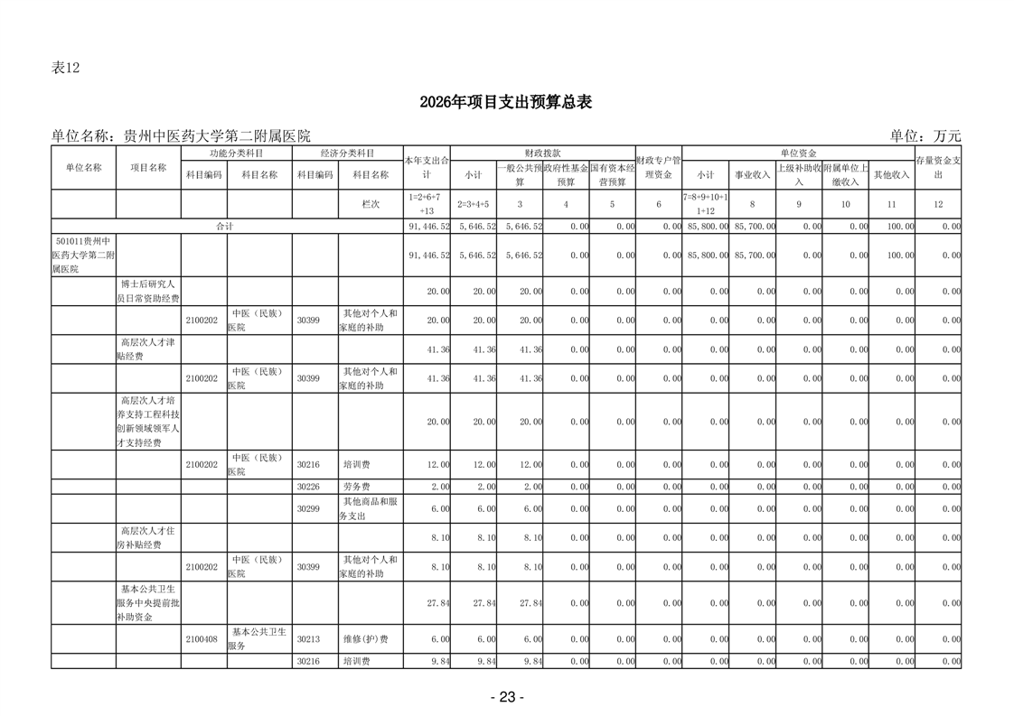 贵州中医药大学第二附属医院2026年单位预算公开信息