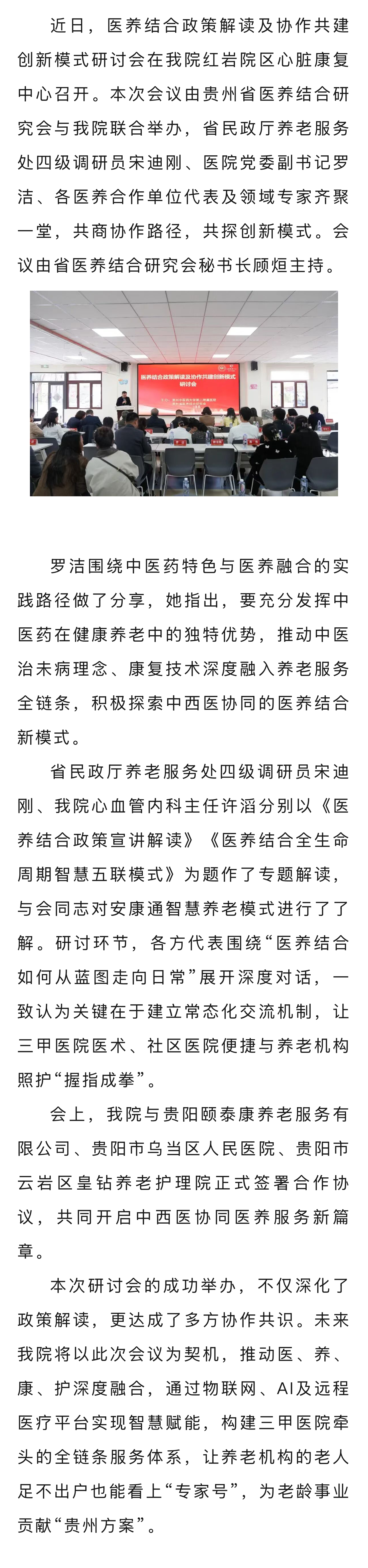 医养融合 智创未来篇章丨医养结合政策解读及协作共建创新模式研讨会在我院红岩院区召开