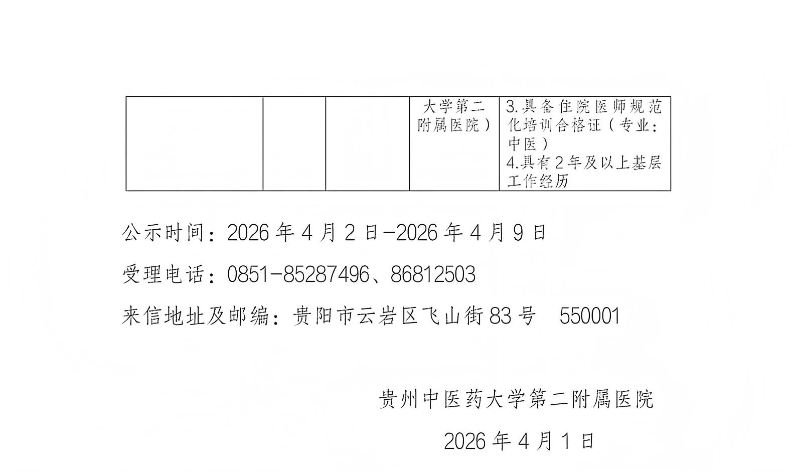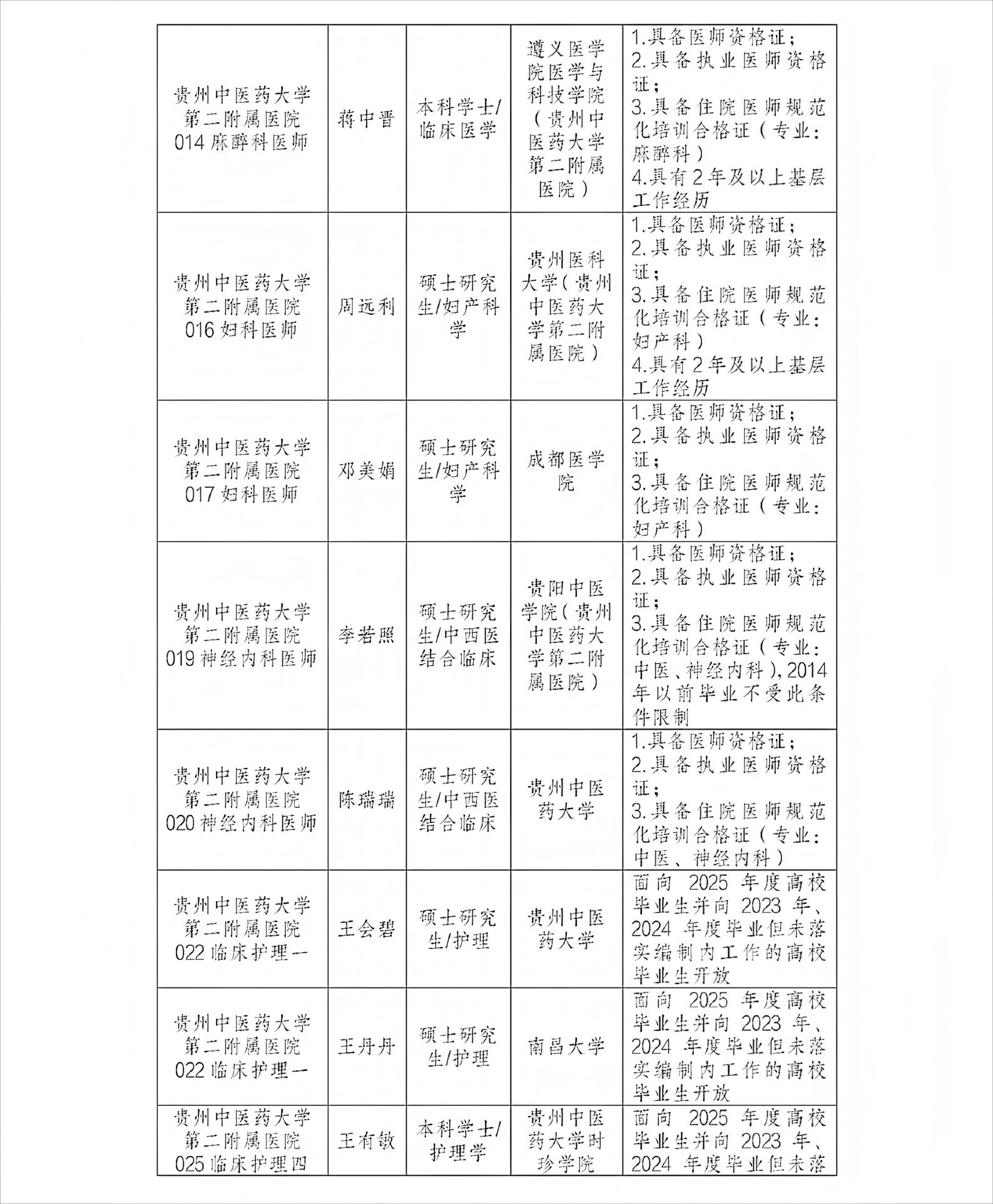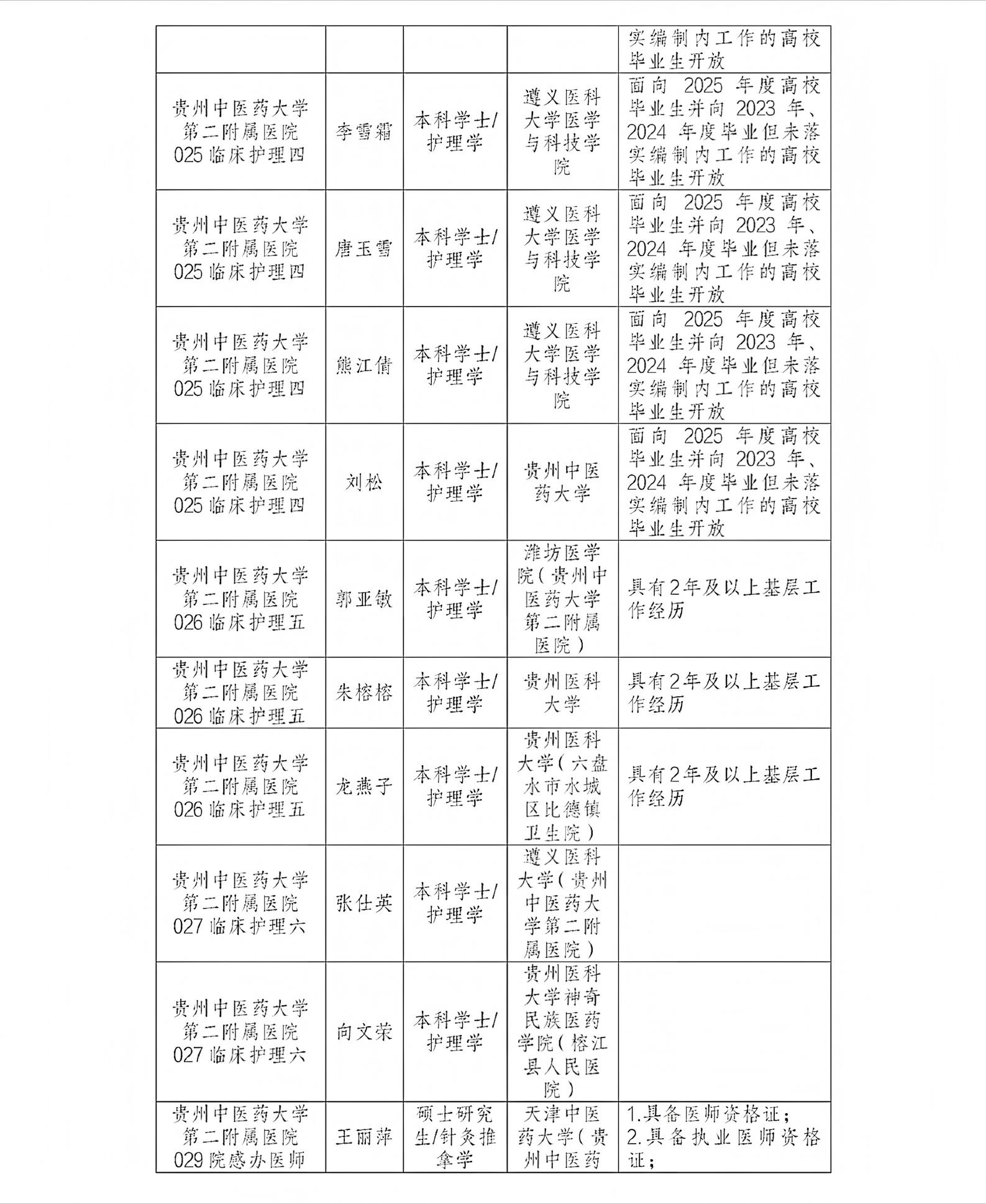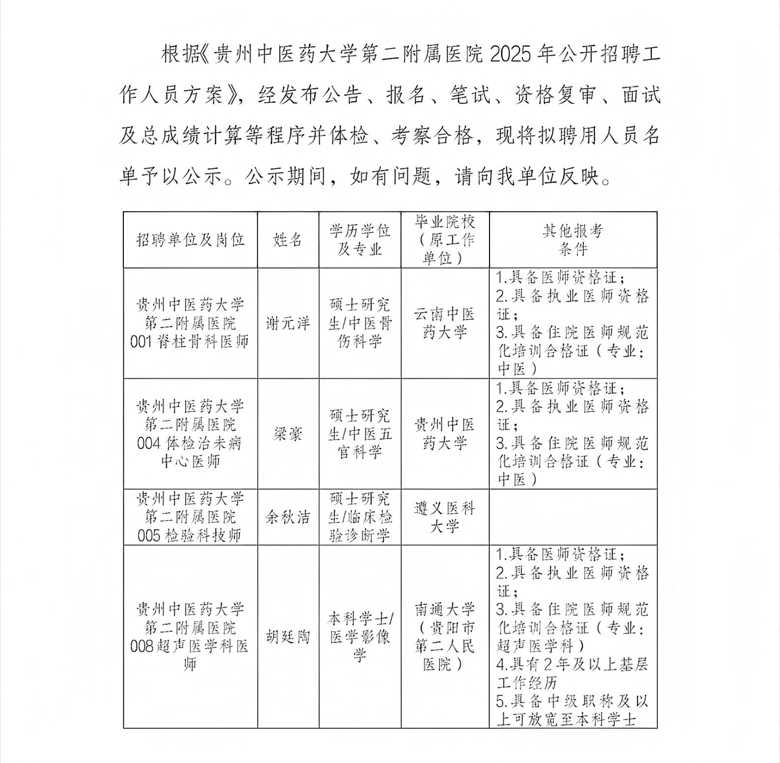 贵州中医药大学第二附属医院2025年公开招聘拟聘用人员公示