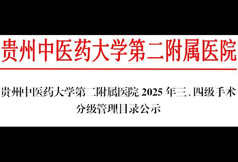 贵州中医药大学第二附属医院2025年三、四级手术分级管理目录公示