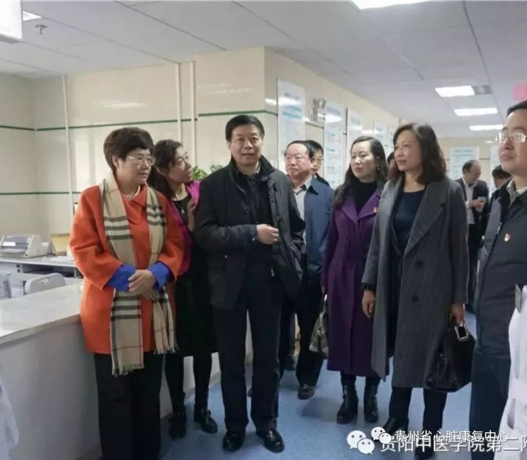 在签约仪式结束后, 贵州省民政厅厅长罗宁,贵州省民政厅副厅长邹志强,贵州省卫计委副主任张光奇,贵州省卫计委副主任、省中医药管理局局长杨洪,贵阳中医学院副院长滕红,省中医药管理局医政处杨惠处长,由我院党委书记张敬杰带领下参观了“康复中心”,对目前我科打造西南首家、国内一流康复中心所做出的努力给予了肯定,并对康复中心提出了希望:全面贯彻落实国家推动健康服务业发展及省委、省政府大健康产业发展的目标, 充分发挥中医特色优势,凝聚力量,做好人才培养及储备,为康复事业发展作出更多贡献!