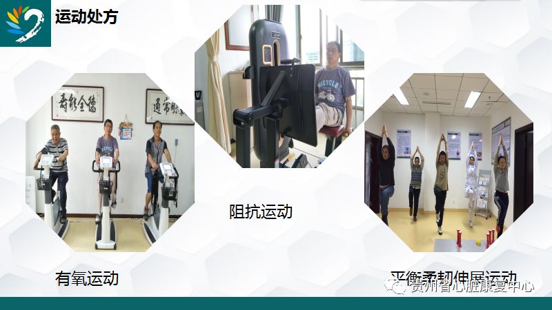 运动种类包含有氧运动、抗阻运动、平衡性训练、柔韧性训练等,所有运动均在心电、血压监护下完成,以保证运动的安全性和有效性。