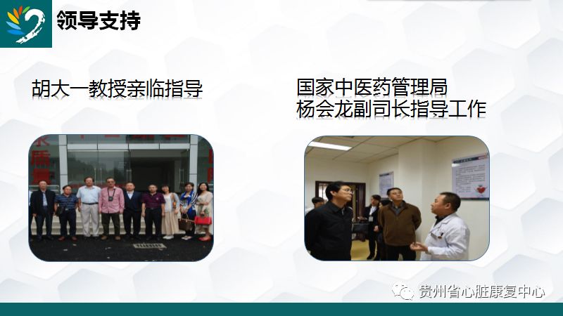 贵阳中医学院第二附属医院心血管内科中西医结合康复单元于2015年7月成立,具有专业资质的学科团队为核心,外聘胡大一教授为康复单元首席顾问,配置了大数据心电遥测监测系统、心电物联系统及心肺运动评估系统、运动平板、康复运动器材等先进的医疗专业设备,致力于打造贵州省第一家康复中心,为患者提供个性化的、专业的康复。目的在于专业康复医护人员的指导下为心血管病患者制定合理科学的训练方案,配合合理的膳食计划及中西医的药物处方以提高心肺功能,增加肌肉力量,提高运动耐量,最终最大程度的提高患者生活质量,以回归社会,回归家庭!